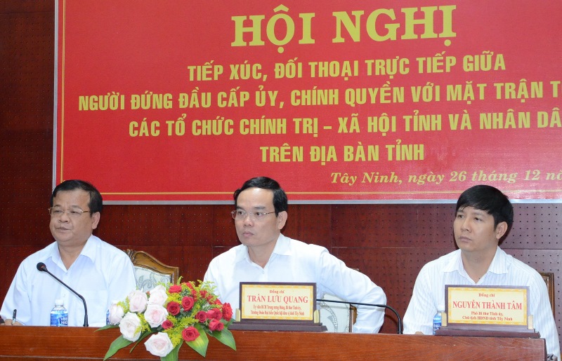 Bí thư Tỉnh uỷ, Trưởng Đoàn đại biểu Quốc hội tỉnh Tây Ninh Trần Lưu Quang đã đưa ra yêu cầu trên đối với các địa phương tại hội nghị tiếp xúc đối thoại trực tiếp giữa người đứng đầu cấp uỷ, chính quyền với Mặt trận Tổ quốc, các tổ chức chính trị - xã hội và người dân diễn ra sáng 26.12.