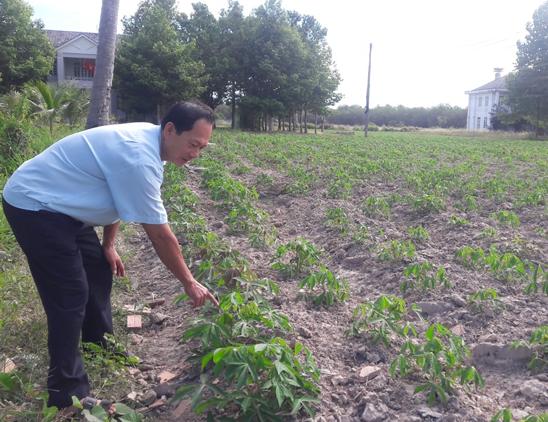 Một rẫy mì mới trồng bị nhiễm bệnh khảm lá mì nặng ở xã Tân Lập, huyện Tân Biên.