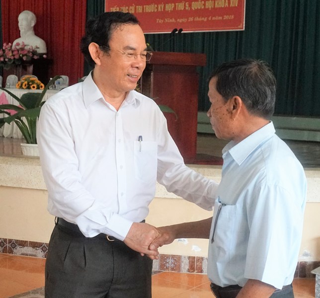 Sáng 26.4, tại hội trường Sở Giáo dục và Ðào tạo, Ðoàn đại biểu Quốc hội tỉnh Tây Ninh gồm ông Nguyễn Văn Nên- Bí thư Trung ương Ðảng, Chánh Văn phòng Trung ương Ðảng; ông Nguyễn Mạnh Tiến- Phó Chủ nhiệm Uỷ ban Ðối ngoại của Quốc hội; ông Hoàng Ðình Chung- Cục phó Cục Chính trị Quân khu 7; ông Trần Lưu Quang- Bí thư Tỉnh uỷ, Trưởng Ðoàn ÐBQH; ông Huỳnh Thanh Phương- Phó trưởng Ðoàn ÐBQH và ông Trịnh Ngọc Phương- Bí thư Huyện uỷ Tân Biên đã có buổi tiếp xúc cử tri là lãnh đạo, cán bộ, công chức và người lao động các sở, ban, ngành, đoàn thể tỉnh, các doanh nghiệp và lực lượng vũ trang.