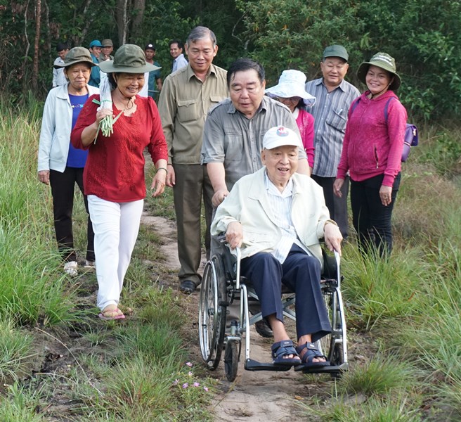 Ông Tô Bửu Giám (ngồi xe lăn) thăm lại Căn cứ Trung ương Cục miền Nam.