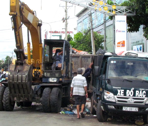 Người dân thu dọn rác ở thị trấn Gò Dầu (ảnh Ngọc Hân).