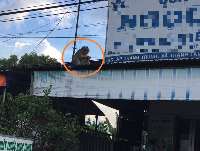Chú khỉ xuất hiện trên địa bàn xã Thạnh Tân.