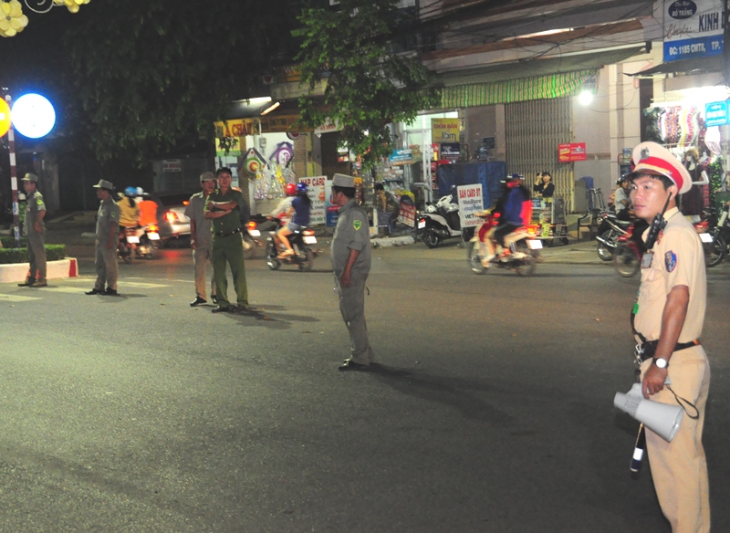 Cảnh sát giao thông và lực lượng Tuần tra nhân dân bảo đảm an ninh trật tự trong đêm 27.1