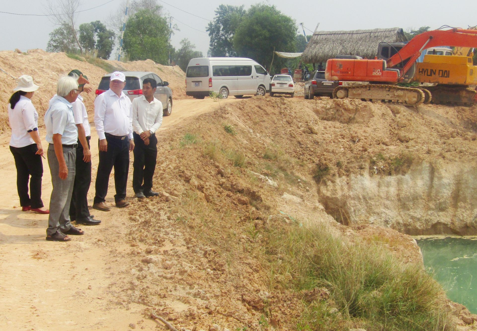 Đoàn công tác khảo sát tại một điểm khai thác ở xã Tiên Thuận, Bến Cầu.