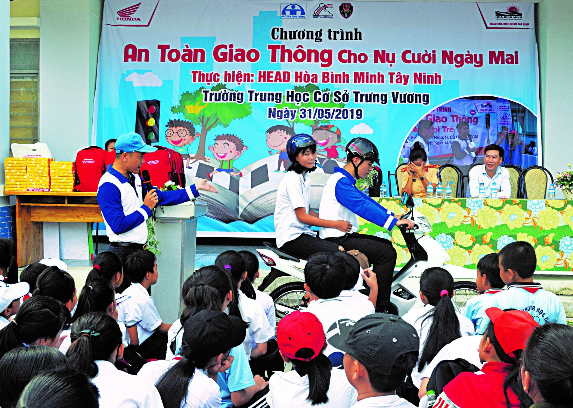 Bên cạnh việc kinh doanh xe máy, Công ty TNHH HEAD Hoà Bình Minh còn tích cực tổ chức nhiều chương trình tuyên truyền an toàn giao thông dành cho khách hàng và học sinh trên địa bàn tỉnh.