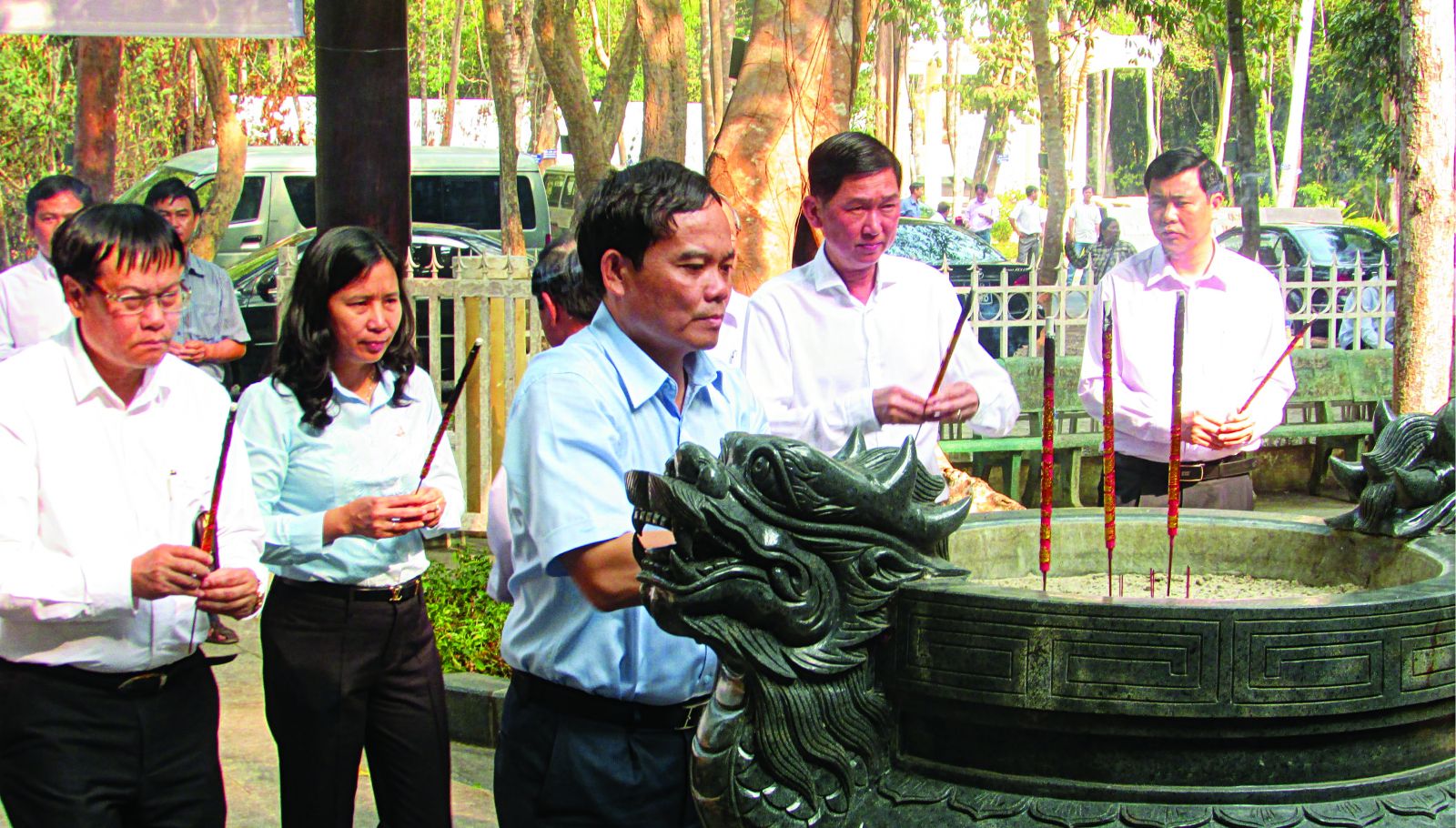 Bí thư Tỉnh uỷ Trần Lưu Quang thắp hương tại Nhà bia Di tích lịch sử Ban Kiểm tra Trung ương Cục miền Nam.