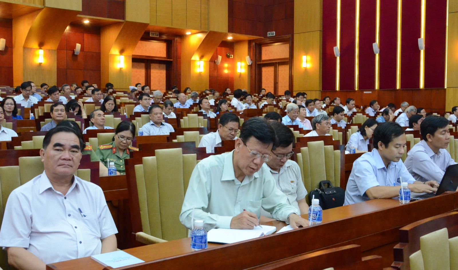 Các đại biểu tham dự hội nghị tại điểm cầu hội trường Tỉnh uỷ.