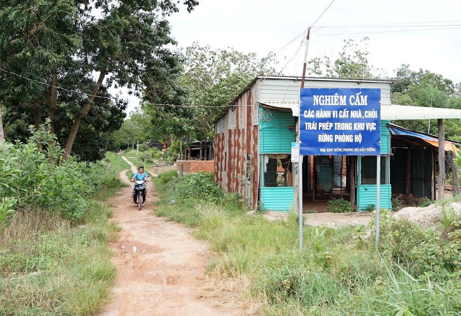 Mặc dù Ban quản lý khu rừng phòng hộ đã cắm bảng thông báo “nghiêm cấm các hành vi cất nhà, chòi trái phép trong khu vực rừng phòng hộ”, nhưng người dân vẫn sang nhượng đất và cất nhà ở.