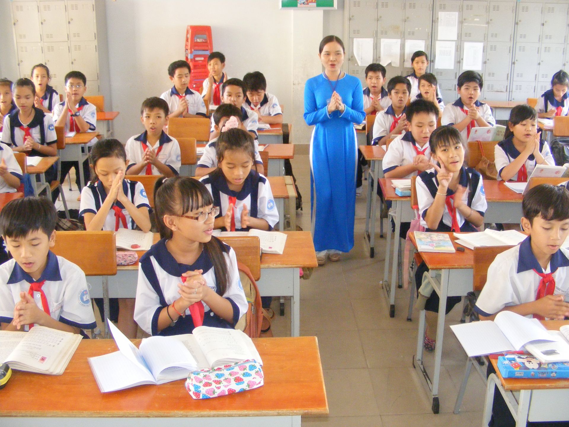 Sinh viên Trường CÐSP Tây Ninh trong một đợt thực tập sư phạm ở Trường THCS Võ Văn Kiệt, phường IV, TP. Tây Ninh.