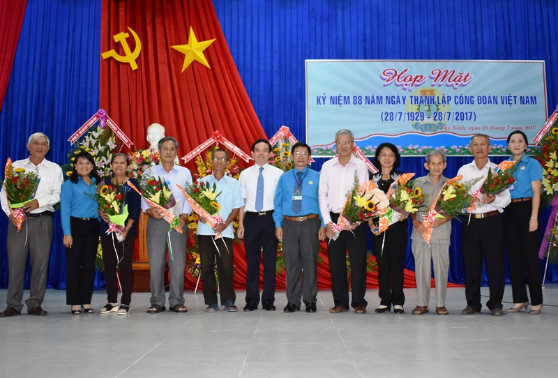 Sáng 28.7, Liên đoàn Lao động tỉnh tổ chức lễ kỷ niệm 88 năm Ngày thành lập Công đoàn Việt Nam (28.7.1929 - 28.7.2017). Đến dự có Bí thư Tỉnh uỷ Trần Lưu Quang, Trưởng Ban Dân vận Tỉnh uỷ Nguyễn Minh Triều.