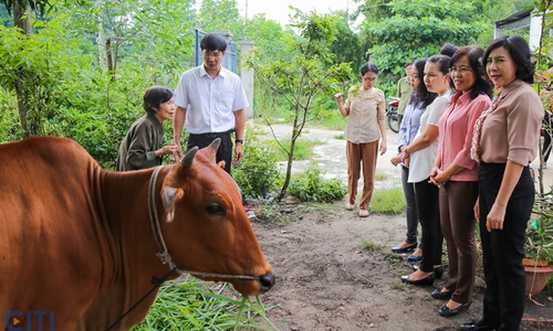 Trao bò sinh sản cho gia đình của chị Tươi. |