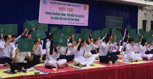 Hội LHPN huyện Gò Dầu phối hợp với Trường THPT Ngô Gia Tự tổ chức hội thi Rung chuông vàng tìm hiểu về cuộc đời nữ anh hùng của Việt Nam qua các thời kỳ. Đây là sân chơi bổ ích cho các em học sinh sau những giờ học tập căng thẳng, là dịp để các em học sinh giao lưu, học hỏi, mở rộng vốn kiến thức cho bản thân.