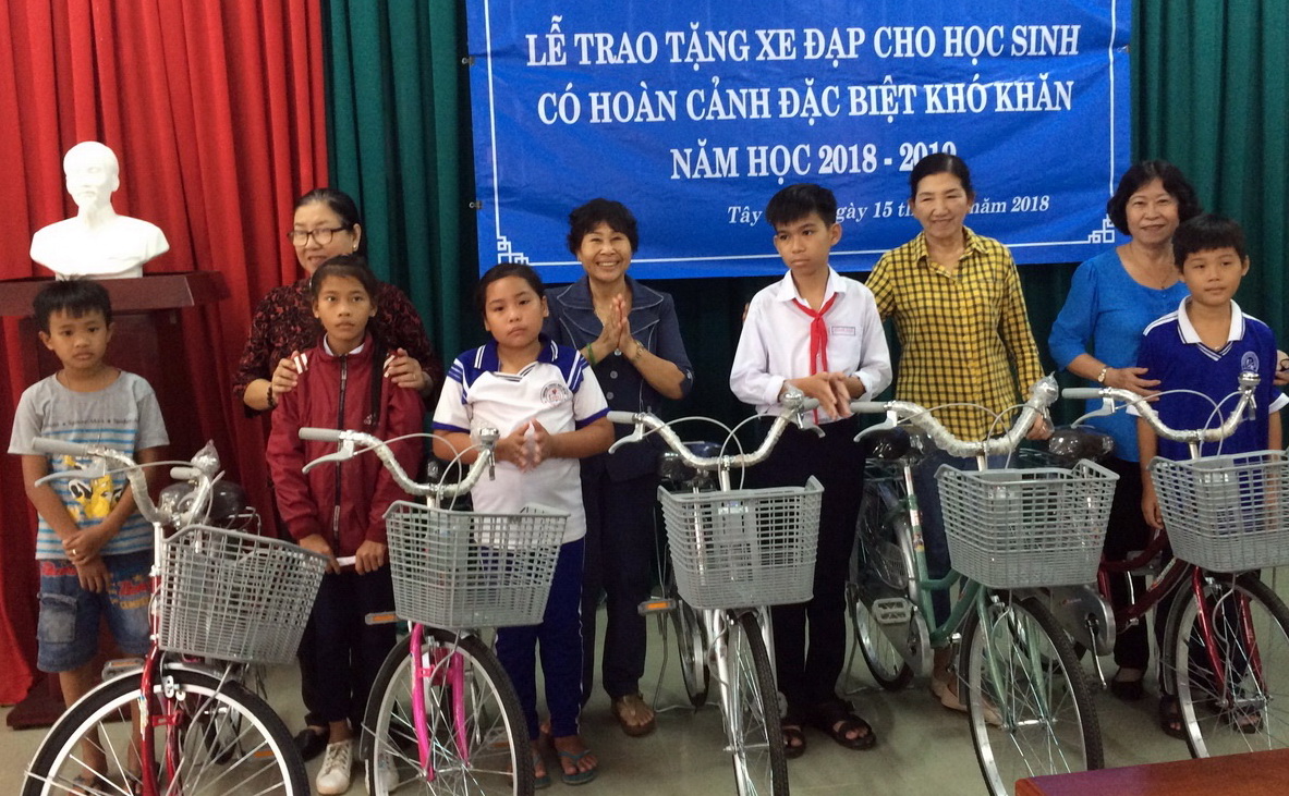 Đợt này có 55 em học sinh thuộc 3 huyện biên giới Bến Cầu, Tân Biên, Tân Châu, 3 CLB khuyết tật của các xã Đồng Khởi (huyện Châu Thành), Ninh Sơn (TP.Tây Ninh), Long Thành Bắc (huyện Hoà Thành) và Trường THCS Trần Hưng Đạo (TP.Tây Ninh) được tặng xe, trị giá mỗi chiếc 1,1 triệu đồng.