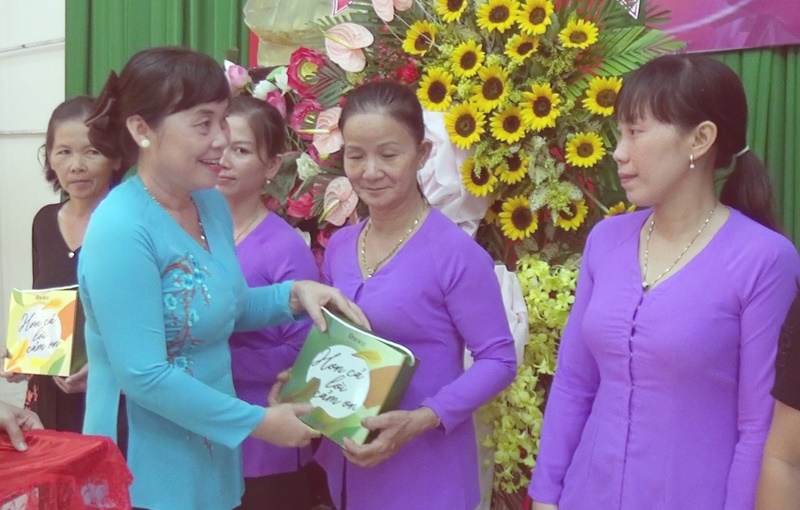 Tặng quà cho cán bộ Hội LHPN huyện. |