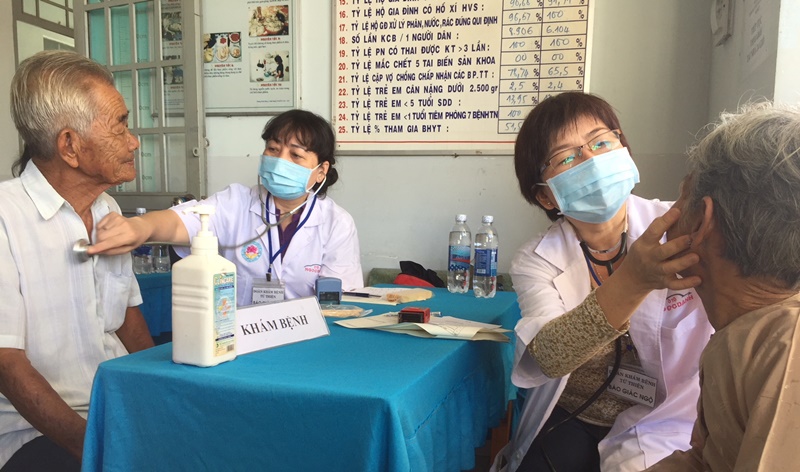 Khám bệnh cho người dân xã Long Thành Nam. |