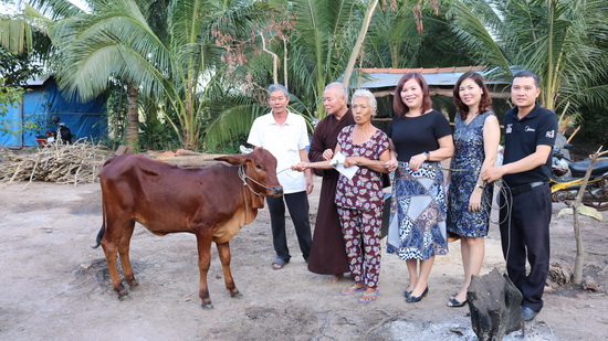 Dịp này, bà Trần Thị Quyến còn được Thượng tọa Thích Định Tánh, trụ trì chùa Cẩm Phong trao tặng một con bò sinh sản trị giá 20 triệu đồng.