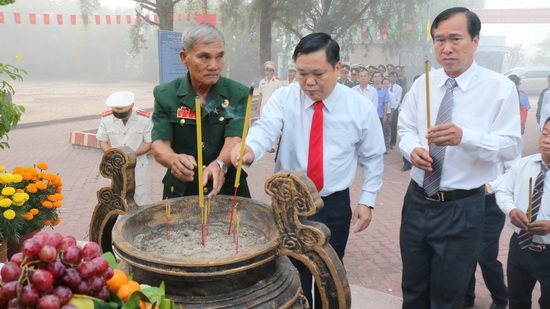 Với không khí trang nghiêm, ấm áp, đại biểu đã dâng hương lên Đài tưởng niệm, tưởng nhớ đến hương hồn các chiến sĩ đã anh dũng hy sinh cho sự nghiệp giải phóng dân tộc thống nhất đất nước.