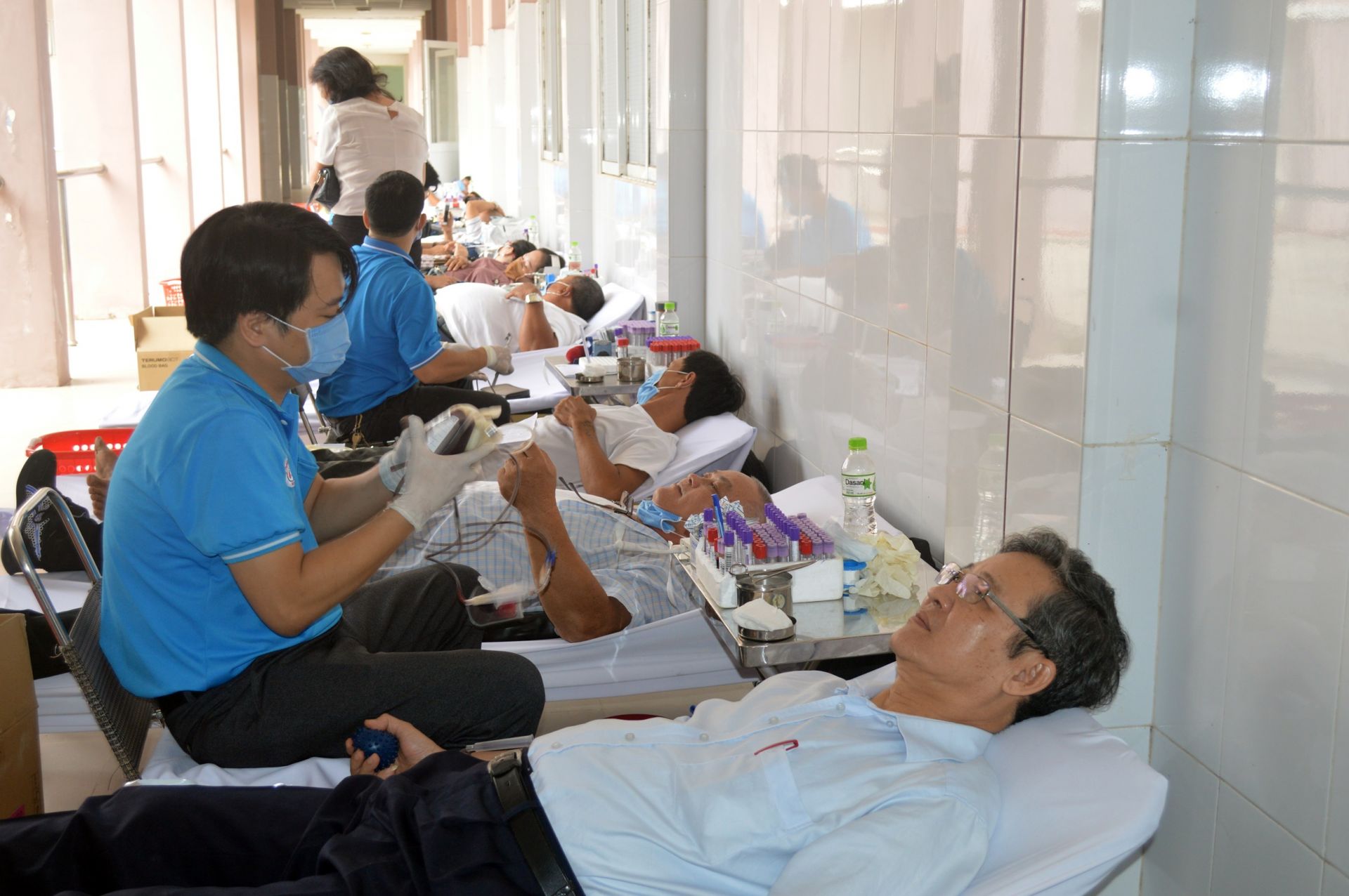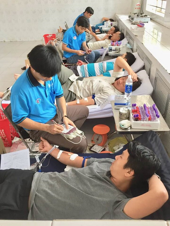 Các tình nguyện viên tham gia hiến máu.