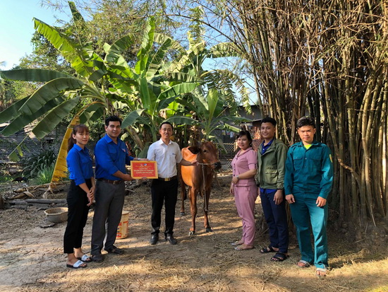 Trao bò cho thanh niên có hoàn cảnh khó khăn.