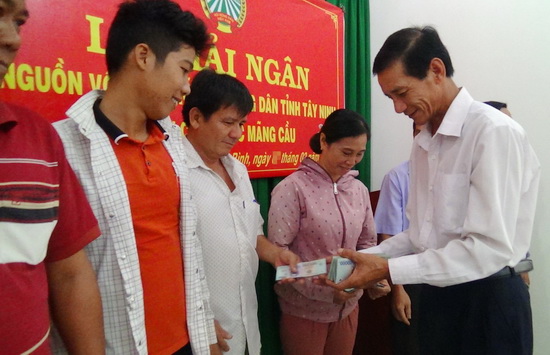 Ông Trần Văn Hận – Chủ tịch Hội Nông dân tỉnh trao vốn cho các hội viên.