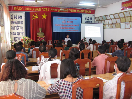 * Trước tình hình diễn biến phức tạp, khả năng lây truyền nhanh, xu hướng tăng nhanh về số mắc và tử vong của dịch bệnh Covid-19, để chủ động phòng chống dịch bệnh, Phòng GD&ĐT thành phố Tây Ninh tổ chức tuyên truyền phòng, chống dịch bệnh cho hiệu trưởng các trường mầm non, tiểu học và trung học cơ sở trên địa bàn.
