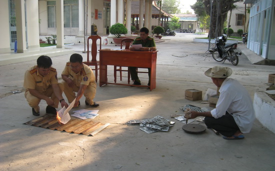 Hội đồng tiêu hủy Công an huyện đã đốt cháy hoàn toàn 39 giấy chứng nhận đăng ký xe mô tô là mẫu cũ không còn sử dụng, mẫu in lệch, in mờ và 16 hồ sơ xe mô tô có quyết định thu hồi sung công quỹ nhà nước; tiêu hủy bằng cách cắt, đập làm hư hỏng hoàn toàn 321 biển số xe mô tô bị thu hồi, biển số chuyển đi ngoài tỉnh và biển số đổi trong năm 2019.