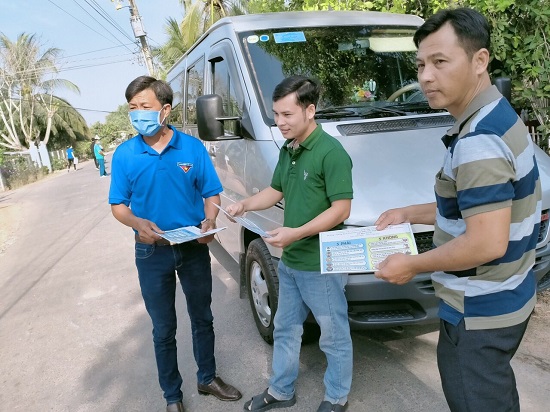 Phát tờ rơi phòng, chống dịch Covid–19.