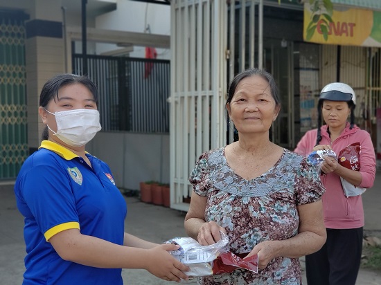 Các bạn ĐVTN đã phát 1.000 cái khẩu trang vải và 500 phần bánh kẹo cho người dân. Chi phí do Đoàn Thanh niên của phường vận động Cơ sở bánh tráng Tân Nhiên và Công ty TNHH MTV TM-SX Lê Trang Phát tài trợ. Qua đó tạo điều kiện cho người dân có thể tự bảo vệ bản thân, phòng chống dịch bệnh Covid-19.