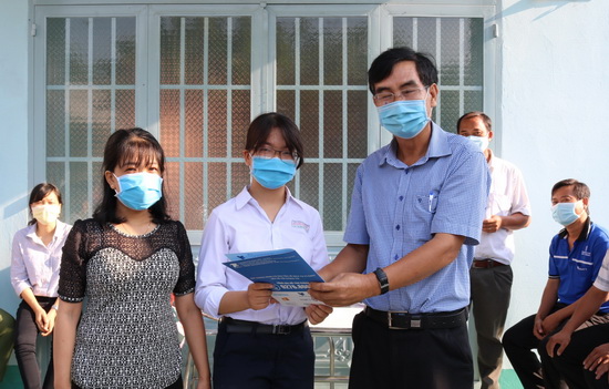 Trao quyết định bàn giao nhà cho gia đình em Thái Thị Kim Ngân.