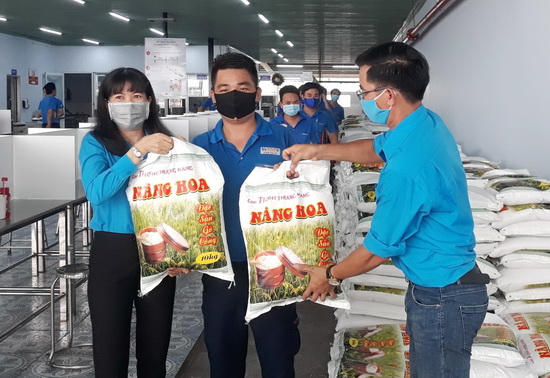 * Công đoàn và Ban Giám đốc Công ty cổ phần dệt Trần Hiệp Thành (Khu công nghiệp Trảng Bàng) tổ chức trao tặng 700 phần quà cho đoàn viên, người lao động khó khăn, mỗi phần quà trị giá 300.000 đồng.