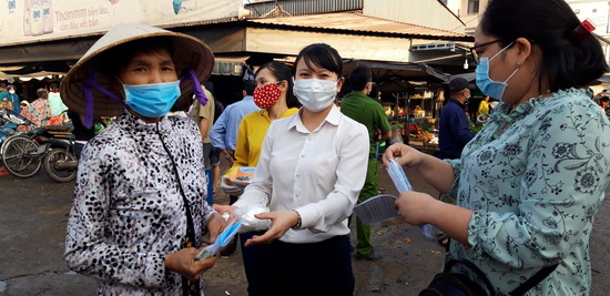 Tặng khẩu trang cho người dân.