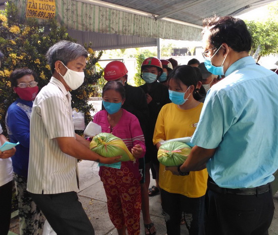 Mỗi phần quà trị giá 150.000 đồng, do MTTQ phường vận động Công ty TNHH & TM Lý Giang (khu phố Phước Hiệp) và Giáo xứ Bình Nguyên hỗ trợ.
