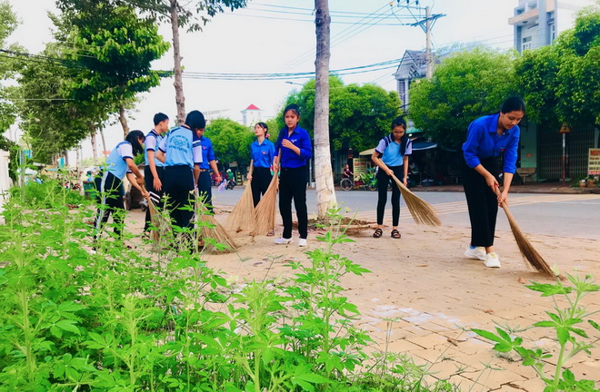 ĐVTN Châu Thành dọn dẹp vệ sinh đường phố.
