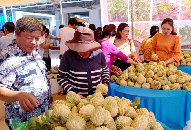 Sản phẩm mãng cầu Hoàng hậu được giới thiệu tại chợ Suối Dây.