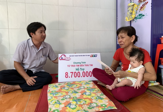 Ông Dương Nguyễn Vũ Hải-Phó Trưởng phòng Thời sự Đài PT-TH Tây Ninh đã đến trao số tiền của mạnh thường quân hỗ trợ cho hai bà cháu.