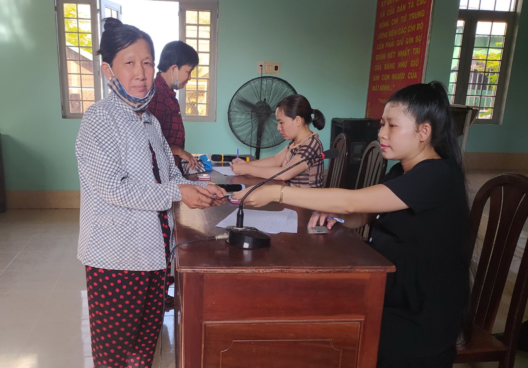 Người dân xã Tiên Thuận nhận tiền hỗ trợ.