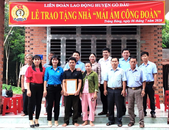 * LĐLĐ huyện Gò Dầu vừa bàn giao 2 căn nhà “Mái ấm Công đoàn” cho chị Phạm Thanh Hương (sinh năm 1979, ngụ ấp Thuận An, xã Truông Mít, huyện Dương Minh Châu) và chị Nguyễn Thanh Chừng (sinh năm 1979, ngụ ấp Trảng Sa, xã Đôn Thuận, thị xã Trảng Bàng). Cả 2 chị là công nhân lao động, đoàn viên thuộc Công đoàn cơ sở Công ty cổ phần công nghiệp Federal Bay.