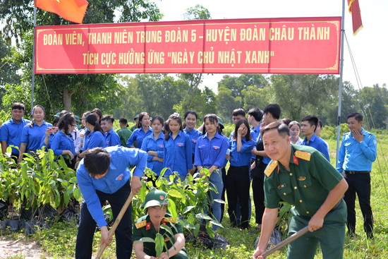 Nhân dịp này, Ban chấp hành Huyện đoàn Châu Thành đã trao tặng cho Đoàn cơ sở Trung đoàn 5 300 cây xanh và tiến hành trồng tại hồ bơi, thao trường huấn luyện của Trung đoàn.