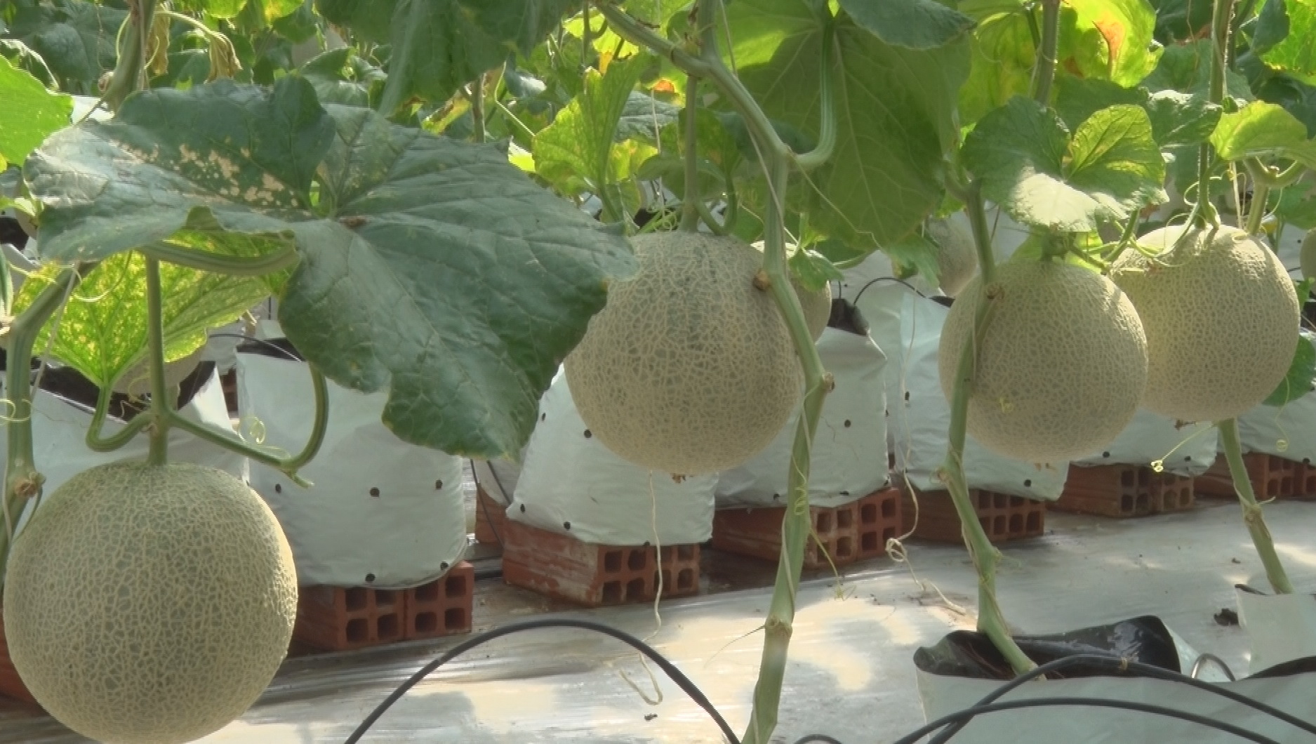 Dưa lưới trong nhà màng chuẩn bị tới ngày thu hoạch.