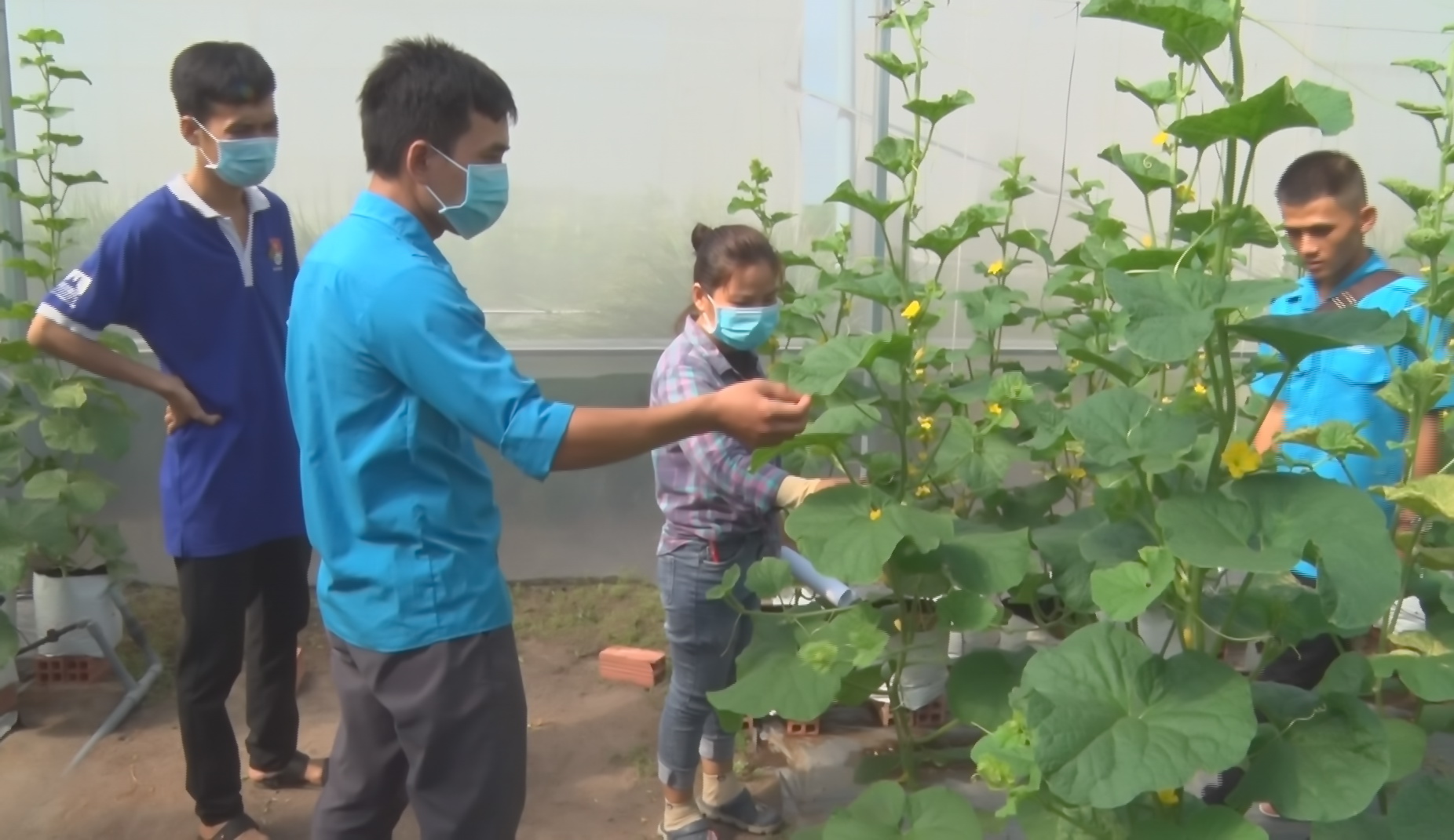 Tại đây, các bạn đoàn viên, thanh niên đã được gia đình ông Đặng Hữu Nghĩa-chủ vườn giới thiệu về kỹ thuật làm nhà màng trồng dưa lưới, trong đó nêu rõ ưu điểm vượt trội là giúp chắn mưa, nắng, ngăn côn trùng xâm nhập; hệ thống tưới nước nhỏ giọt vào gốc gíup tiết kiệm nước, đảm bảo nước cho cây sinh trưởng và phát triển tốt; cách chăm sóc dưa lưới trong nhà màng mang lại hiệu quả cao…