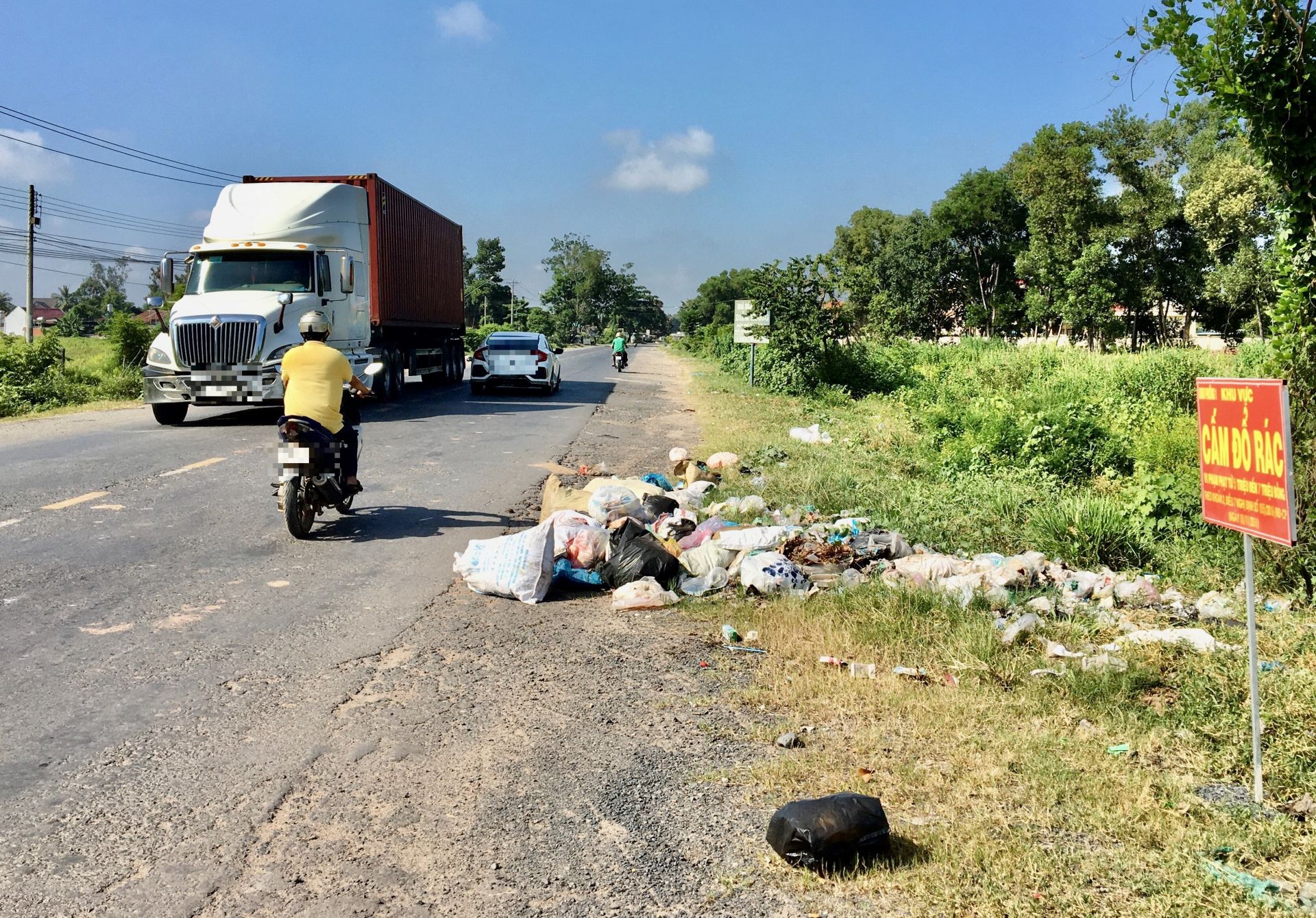 Hiện trạng các đống rác trên Quốc lộ 22B đoạn thuộc khu Khu phố 3, phường 1, TP. Tây Ninh.