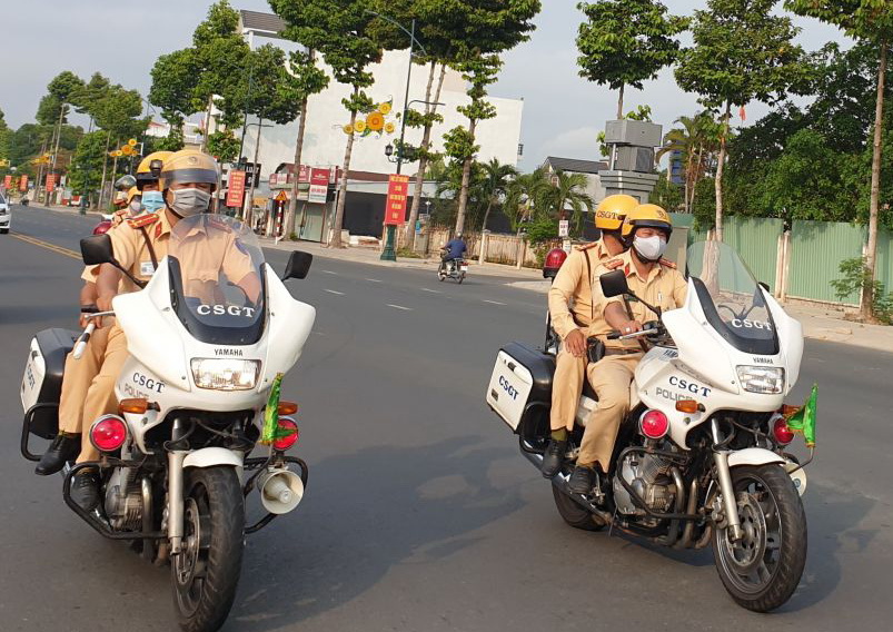Lực lượng Cảnh sát giao thông tuần tra bảo đảm trật tự an toàn giao thông.