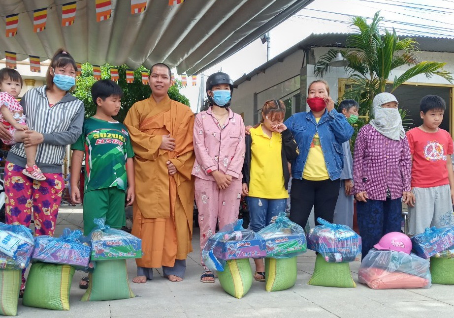 Mỗi phần quà trị giá 300.000 đồng, tổng chi phí 30 triệu đồng, do chùa vạn Đức vận động phật tử đóng góp.