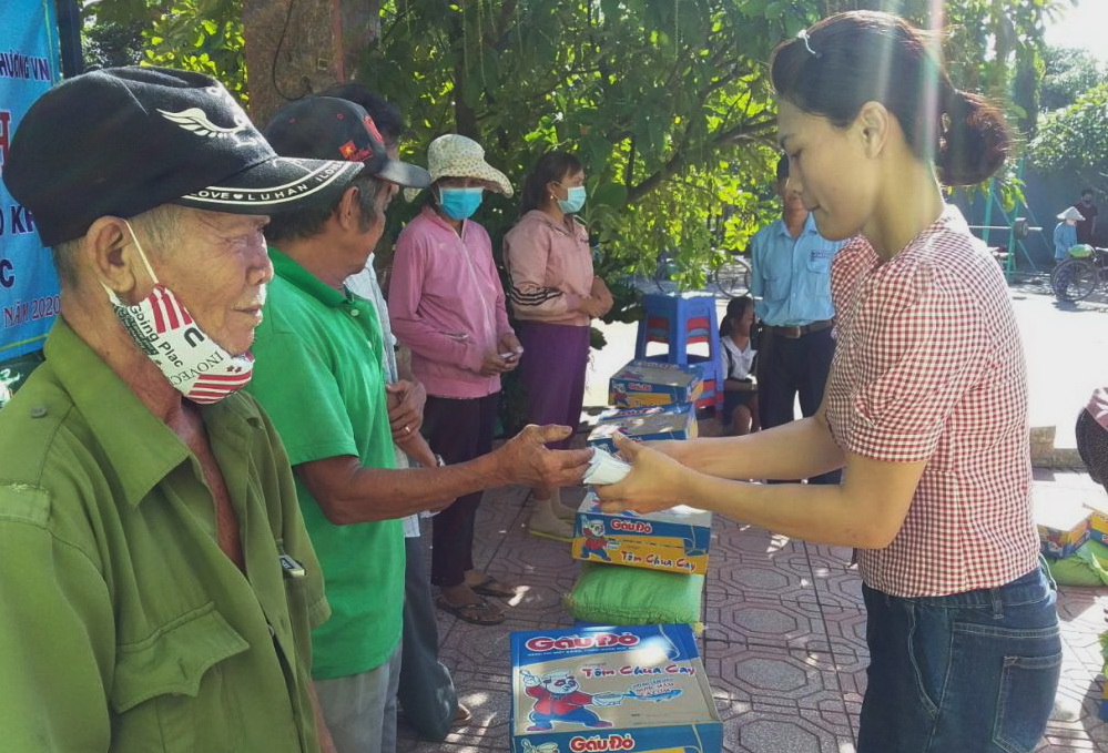 Công ty môi trường xanh Huê Phương tặng quà cho hộ nghèo.