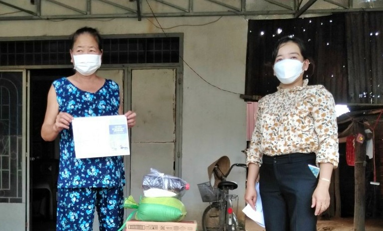 Trao quà cho phụ nữ có hoàn cảnh khó khăn.