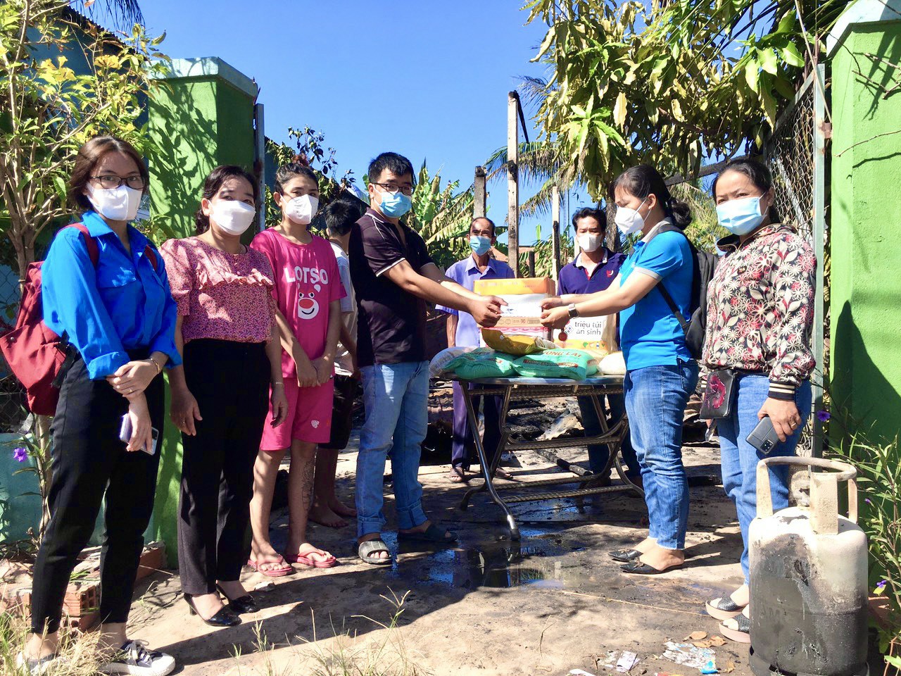 *Hội LHPN phường Long Thành Bắc (thị xã Hoà Thành) phối hợp các đoàn thể của phường đến thăm gia đình anh N.T.T, sinh năm 1982, ngụ khu phố Long Mỹ, phường LongThành Bắc. Hoàn cảnh gia đình anh T vô cùng khó khăn, vợ chồng ly dị, anh phải nuôi hai con, bé lớn 17 tuổi đã nghỉ học, bé nhỏ 14 tuổi đang học lớp 8. Mới đây, căn nhà 3 cha con đang ở không may bị cháy do chập điện, cuộc sống càng vất vả hơn.