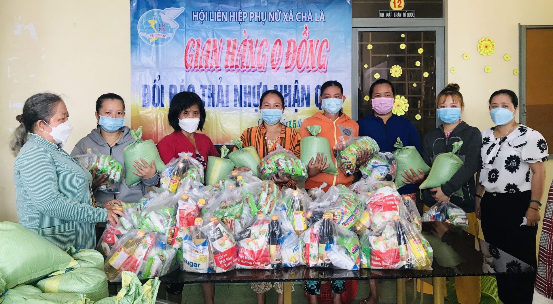 Hội viên, phụ nữ tham gia “Gian hàng 0 đồng” đổi rác thải nhận quà đợt 2 năm 2022.