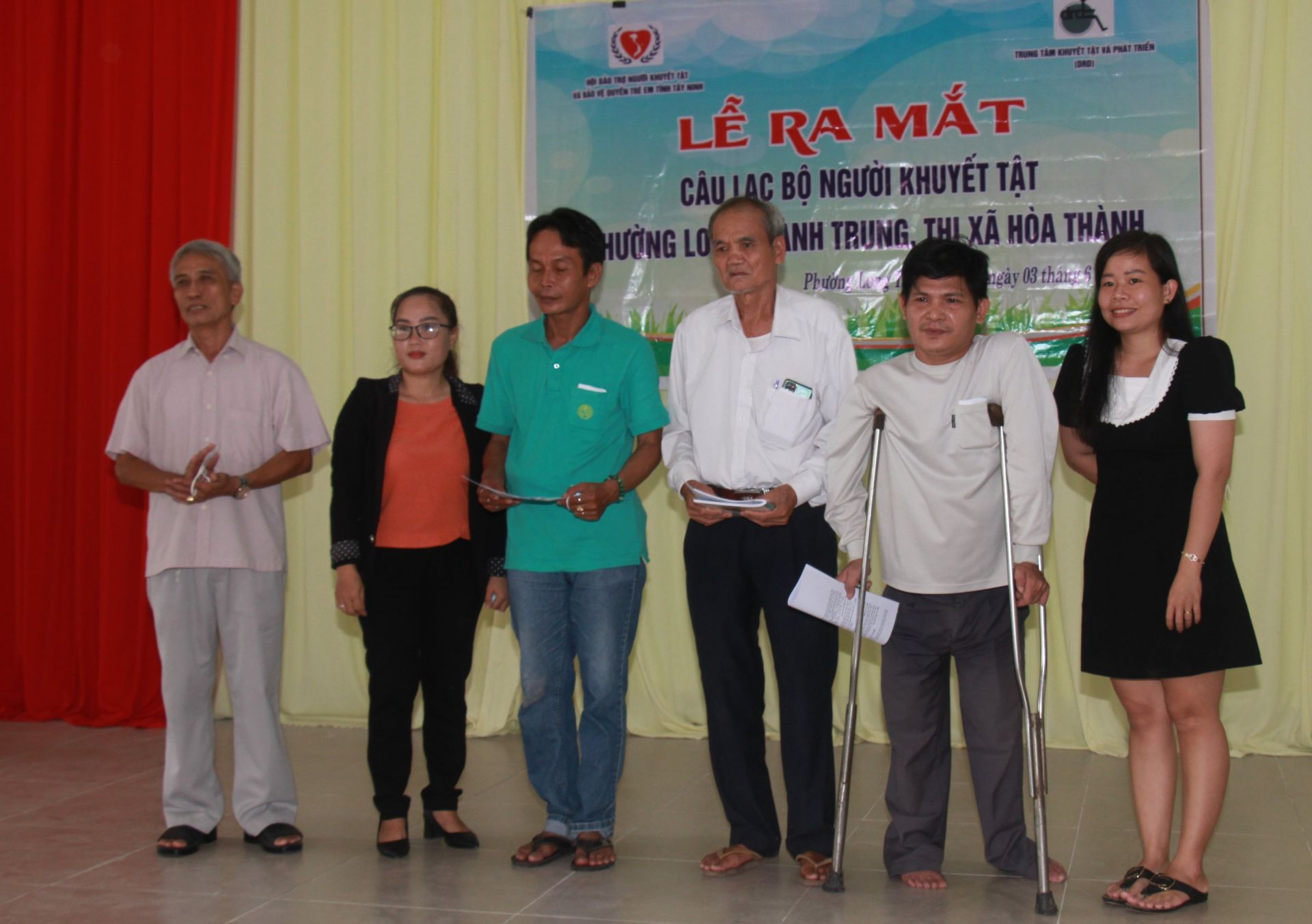 Ông Nguyễn Văn Quá- Chủ tịch Hội Bảo trợ NKT và Bảo vệ quyền trẻ em tỉnh trao quyết định thành lập CLB NKT phường Long Thành Trung. CLB có 17 hội viên, Ban Chủ nhiệm có 3 thành viên do ông Phạm Khác Tứ làm Chủ nhiệm.