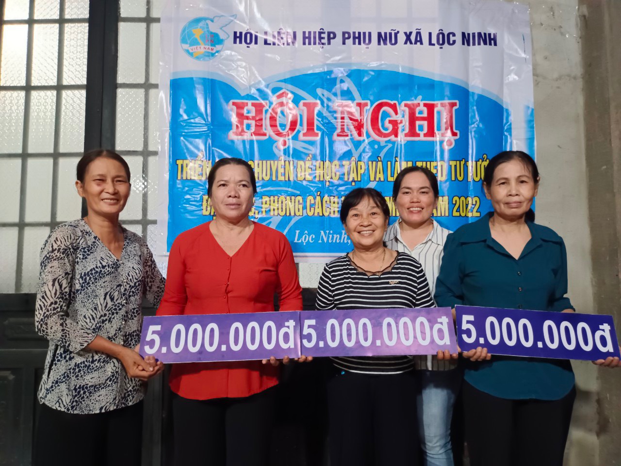 Tại hội nghị, Hội đã tuyên dương bà Trịnh Thị Gái- hội viên Chi hội Phụ nữ ấp Lộc Thuận vì đã có thành tích tiêu biểu trong việc nuôi heo đất tiết kiệm trao vốn khởi nghiệp cho hội viên và tham gia các phong trào do Hội phát động.