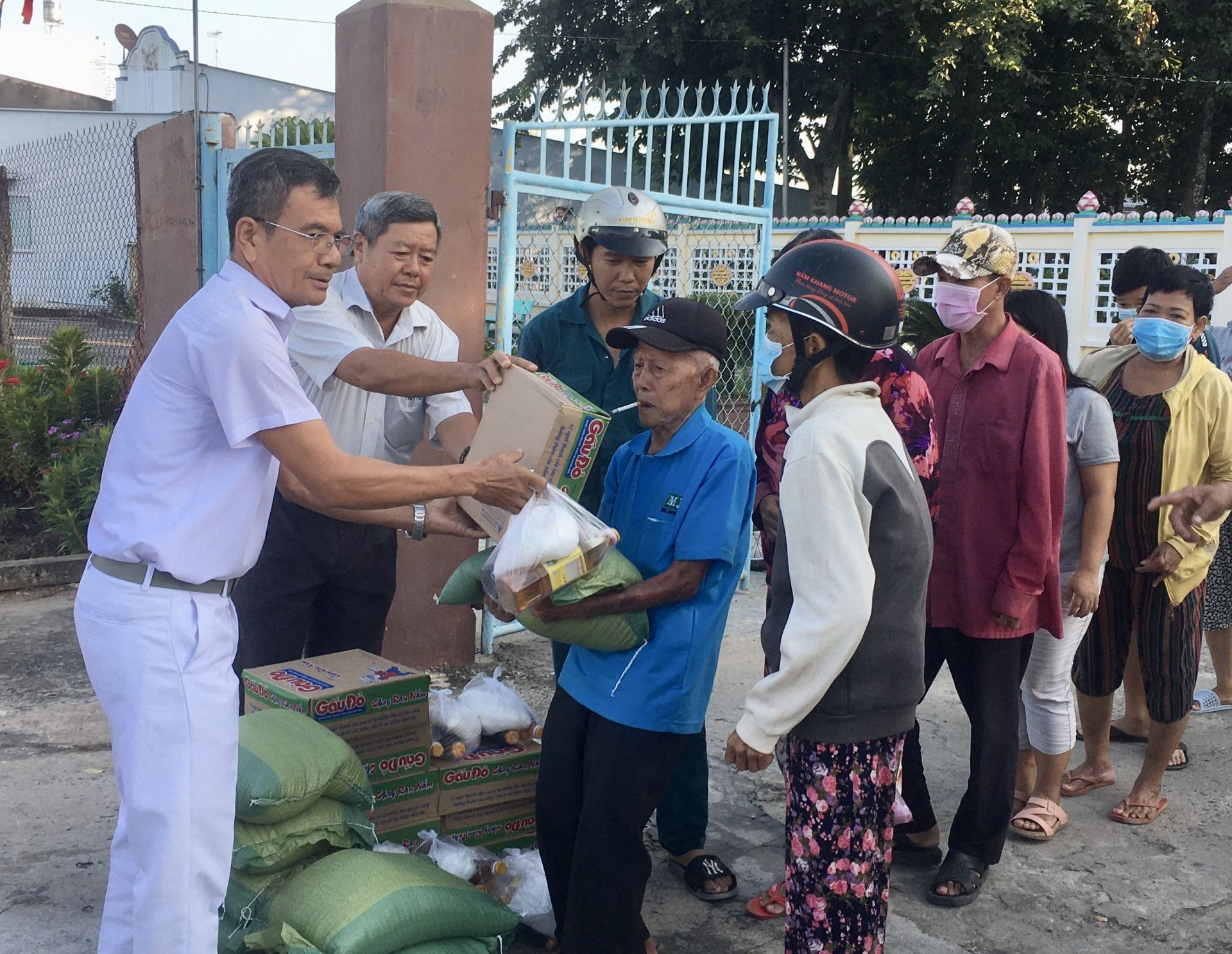 Mỗi phần quà trị giá 300.000 đồng do Hội Nông dân Thị trấn vận động gia đình ông Nguyễn Văn Minh, ngụ khu phố Thanh Bình A, thị trấn Gò Dầu hỗ trợ; mỗi phần cơm và hủ tiếu 15.000 đồng do mạnh thường quân hỗ trợ.